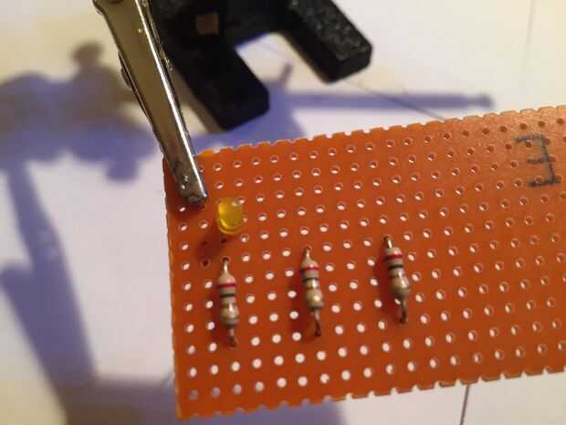 1 - cortar otra vez un poco de la pierna de uno de la resistencia que nos cortan la última vez.