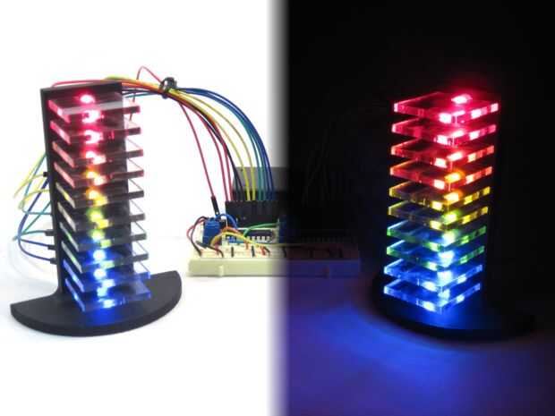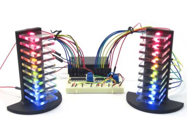 La inspiración para este proyecto empezado cuando vi una gran variedad de impresionantes Torres LED stereo en YouTube (también conocido como medidores de VU). Muchos de los vídeos mostraba el resultado final y tal vez una presentación del proceso de montaje, pero carecía de completa construyen los datos o un diagrama del circuito. Por lo tanto, me puse a averiguar cómo trabajaban y construir mi propia versión de escritorio de "mini" que iría bien con bocinas de computadora, en lugar de un equipo estéreo del salón. Este Instructable le dará instrucciones completas para montar el circuito requerido (incluso si usted no tiene ninguna experiencia de electrónica - incluso puede hacerlo sin soldaduras), construir dos torres LED y gancho hasta una entrada para que pueda al mismo tiempo coche y escuchar música de audio.