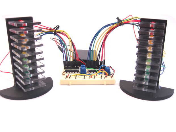 Ahora estás listo para conectar las torres de LED a la placa.