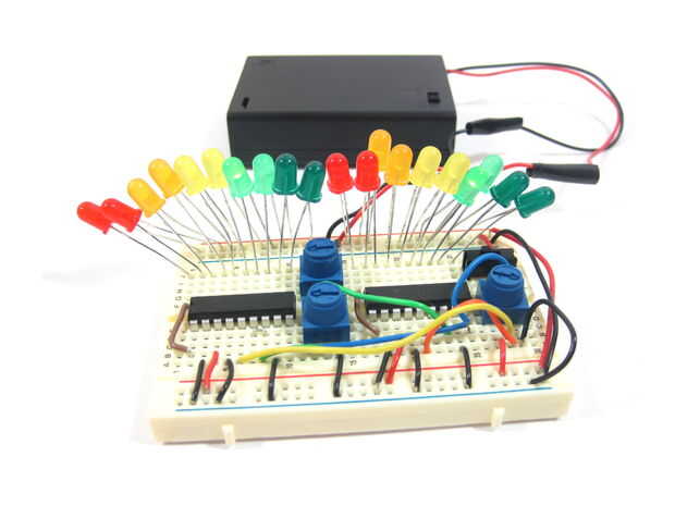 mostrar las combinaciones de color de color LEDs sin necesidad de utilizar un microcontroladorUsted puede hacer un Simple Color ciclo pantalla para RGB (rojo, verde, azul) LEDPaso 1: Lo que usted necesita Se necesita:Potenciómetro de 1 K 1] x3Resiste