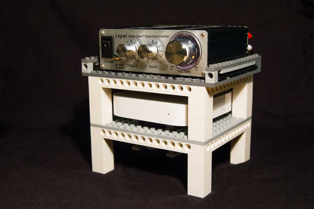 Librero mini LEGO basado en pila de pequeño amplificador con airport expres para la transmisión inalámbrica.