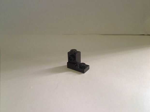 Fije el lado negro del ladrillo de acoplamiento a la placa de 1 x 2 como se muestra.
