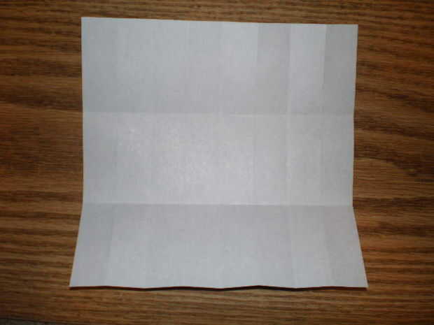 d. Gire el documento 90 grados para que los pliegues que acaba de hacer son horizontales. Hacer 2 dobleces de Valle, dividir el papel en tercios.