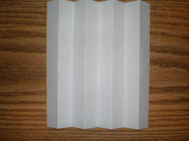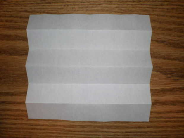e. Haga 3 dobleces mountian, cada uno entre los pliegues realizados en d. ahora debe tenerlo dividido en 6 secciones.