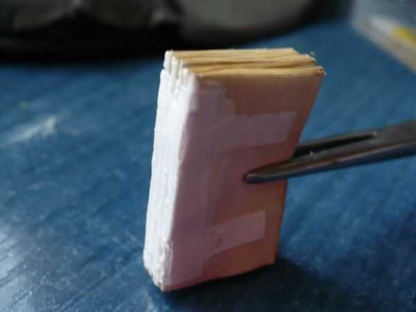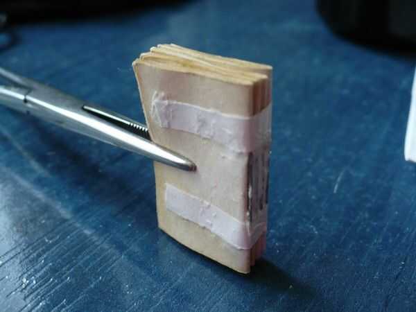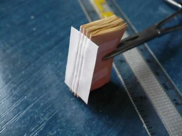 he decidido 4 grupos de 5 hojas. Así que tome papel y corte ancho de 68 mm 20 mm altura. Depósitos en medio de su 5 hojas y en lugar de doblar grapas grapadora. Sustituir 4 veces.