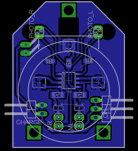 Cuando está en la línea de negro, avanza a una velocidad media, cuando la línea se curva, uno de los fototransistores es la línea y el otro va en él; la señal del fototransistor la línea es un voltaje mayor que antes, porque es la resistencia haya bajado, luego el op-amp envía una señal más grande que el transistor y el motor de su lado vaya más rápido, volviendo el robot en la línea.