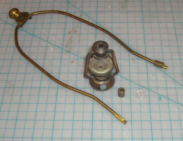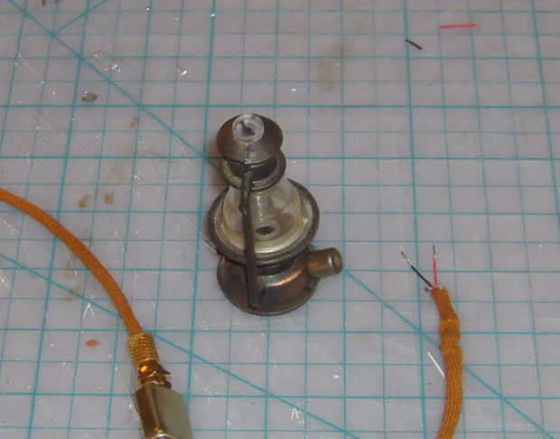 Entonces encontré la pieza perfecta – un brazalete de metal pequeña, de la base de un soporte de la cortina de lámpara, o "arpa". (No estoy seguro exactamente lo que esta pieza se llama, pero para obtener la técnica, es la parte que conecta el "arpa" a la "silla", en la foto superior). Hay algunas cosas que hacen esta parte ideal: es la misma coloración en el metal fundido; tiene una hendidura en ella por lo que puede estar doblado a la forma; y es el tamaño perfecto para caber en el agujero del lápiz y sujete el cable en su lugar.