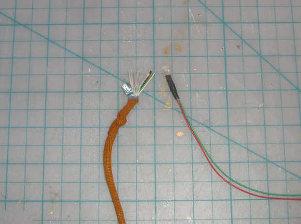 Un cable USB tiene 4 cables interiores de plástico y metal que blinda; dos para datos y dos para la electricidad. No necesitamos los cables dos datos para este proyecto, ya que sólo estamos preocupados por la electricidad. En mi cable, estos cables fueron el negro y el rojo. Os adjunto el hilo rojo de la lámpara al cable negro del cable y el cable verde de la bombilla con el cable rojo en el cable, conecta el cable usb para probarlo y consiguió una luz! Sus colores pueden variar, y puede que necesite hacer algunos experimentos de ensayo y error.