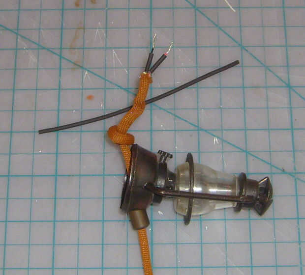 Una vez que has probado el bulbo y sabe que los cables que necesita conectarse para recortar los otros dos cables, malla de protección, etc., por lo que sólo tiene estos dos cables expuestos. Tira un poco de esos dos cables y un pequeño pedazo termocontraíbles de la tubería en los cables de hilo de rosca. Conectar los cables expuestos de la bombilla a los cables expuestos de los cables, y luego deslice el calor tubería hasta el empalme de cubierta del encogimiento. Suave calor, la tubería del encogimiento.