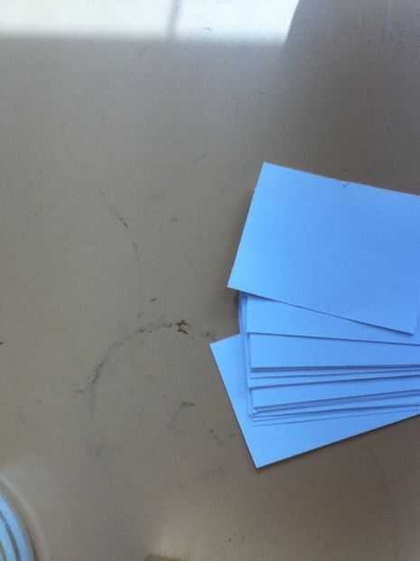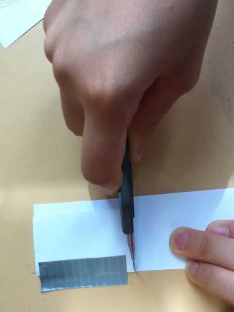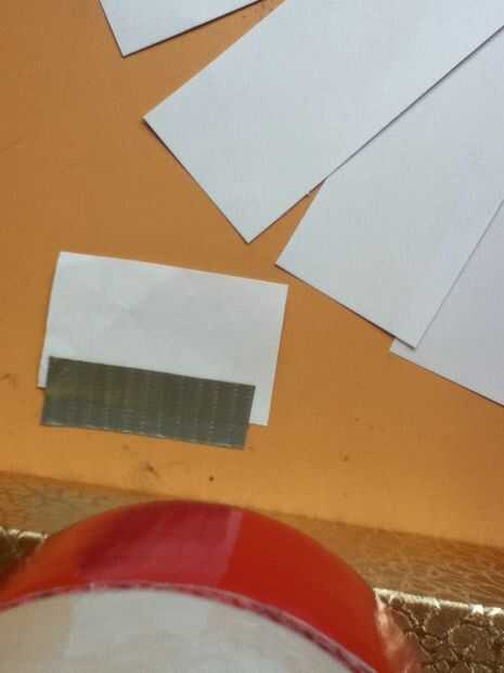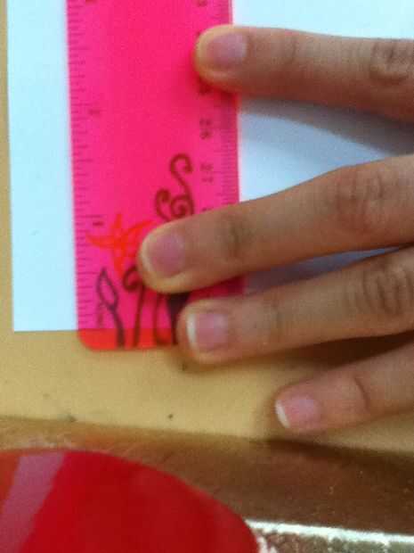Hacer los trozos de papel inferior de la cubierta cerca de 1 milímetro. Yo uso mi regla para cortar el papel A4 en 5 tiras largas. Luego, corté un pedazo pequeño de la tira larga a la longitud lo quiero, y usar alguna cinta a cinta en mi escritorio. (Aquí está la parte confusa, así que mira las fotos por favor). Luego, con las tiras de largo, poner la tira larga por debajo del pequeño trozo de papel, luego medirlo y cortarlo. Lleva mucho tiempo, así que decidió cortar todos los papeles a la vez.