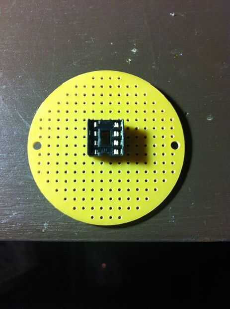 Insert toma con filas de pines frente a los agujeros. Poner en el centro como se muestra. Inserte en el lado que no tiene el metal. Doblar las puntas hacia abajo para mantener en lugar y cada punta de la soldadura.
