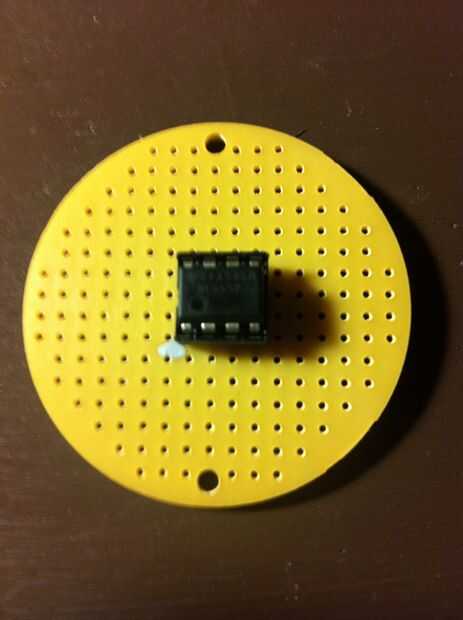Usar el rotulador para hacer cada par de agujeros a utilizar LEDs como se muestra en el cuadro antes. Ignorar los marcas interno sólo se centran en el exterior ocho. Colocar el IC en como se muestra y haga una marca por el punto a como recordatorio. Quitar el IC.