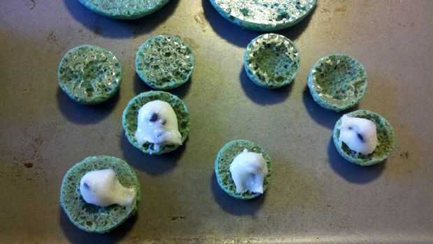 Llenar una ziplock plástico sándwich de tamaño con el relleno y cortar una esquina, luego tubo algunos relleno sobre una galleta y cubra con una cookie de tamaño similar.