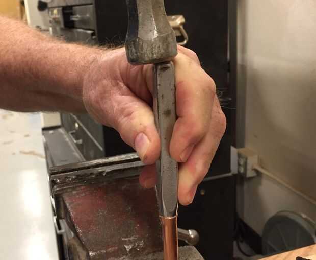 Por lo tanto, cortó otra longitud de la tubería y martillado en una conveniente herramienta de abocardar.
