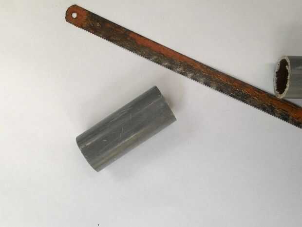 • Cortar el 3/4" PVC de aproximadamente 6 cm con hoja de Sierra