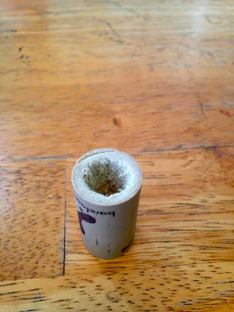 Cuidadosamente ahueque hacia fuera el centro del corcho con el destornillador. Usé un destornillador y un cuchillo de cocina pequeño. Continúe hasta que se han ahuecado hacia fuera a medio camino.