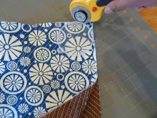 No sé ustedes, pero redondeando las esquinas hace que la manta se vea menos dura. Doblé la manta en medio para que una esquina había alineado con otro rincón y coloca una vieja gorra de pringles y lo había establecido. Corte con una cuchilla giratoria. Tomé una de las esquinas redondeadas y había forrado para arriba con las otras esquinas para que todas las esquinas se vería lo mismo.