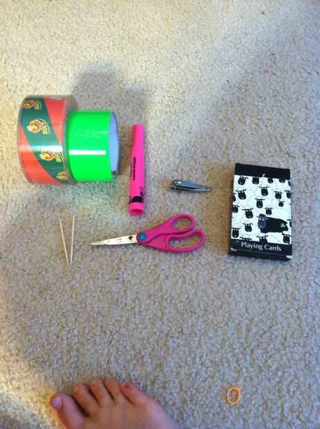 Necesita una caja de naipes una herramienta de escritura toma diente de cinta pato y papel