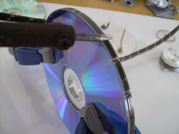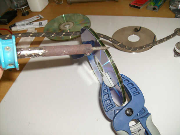 usar soldadura para soldadura de cd/dvd en la parte exterior, hacer alguna línea con punta de soldadura caliente hasta derretir plástico (hacer 10 puntos).