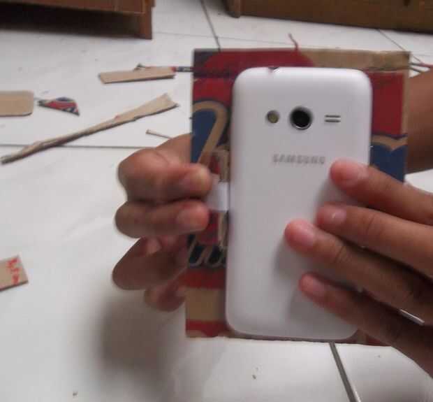 3. Poner el teléfono en la plantilla que acaba de crear, ajustarla y péguelo (imagen 4, 5 y 6)