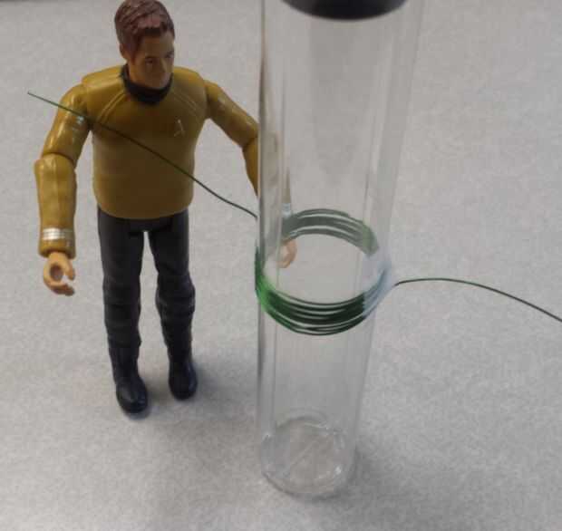 Envolver el alambre alrededor del cilindro 10 veces dejando algún cable adicional en ambos extremos del imán.