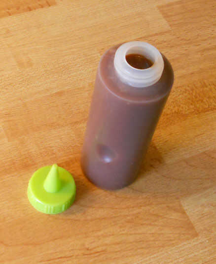 6. ahora deje que se enfríe un poco y verter en un frasco o botella squeezy para almacenamiento. Poner 2 cucharadas en un recipiente pequeño para el paso de helar. Es inmediato, pero pueden almacenarse en el refrigerador durante 2 semanas. Se endurecerá un poco en la nevera. Sólo calentar en microondas o cacerola con agua (botella squeezy, sellado o contenedor) hasta que quede consistencia vertible otra vez.