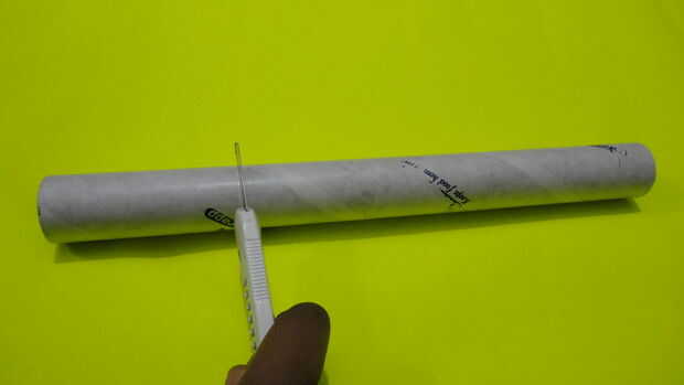 Ahora toma el tubo de cartón y corte en 3" pieza con la ayuda de un cuchillo de la manía.