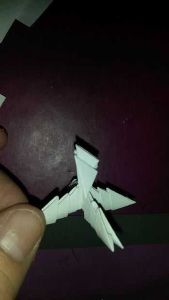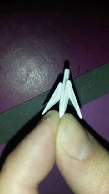 Otra vez pegan esto en la segunda que hice, que hice con papel verde, insertando la aguja entre el adjuntos solapas y bolsillos. Para pegar el cuello al cuerpo me acaba de agregar pegamento a cada aleta y luego se lo deslizó en el cuerpo.