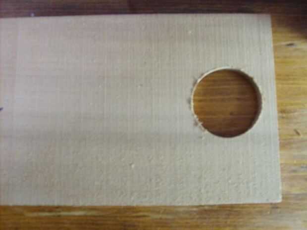 Taladre el agujero grande (2 y 1/2 pulgada de bits) en el centro del cedro y cerca de 1/2 pulgada lejos el borde exterior (ver foto).
