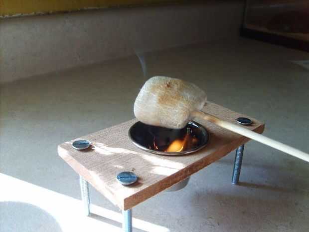 Luz el mondadientes con un fósforo. He encontrado que cerca de 20 palillos de dientes en la taza pueden tostar 2 malvaviscos... tal vez tres, pero me gusta mina agradable y tostado (quemado).