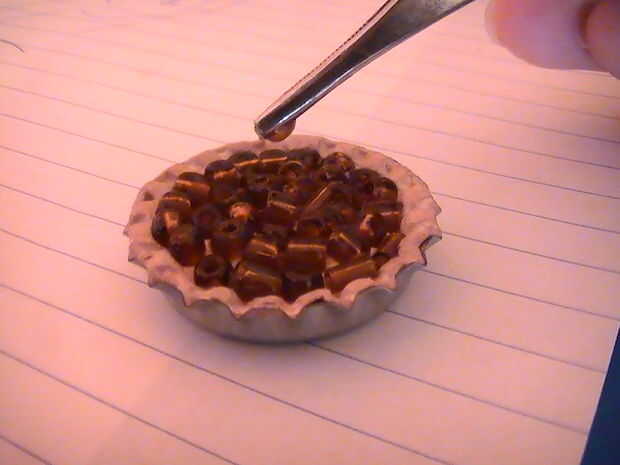 Para el relleno, presionar los granos de cristal en la Sculpy, tratando de ocultar el blanco. Usted podría tener a algún lado. Intente no poner ninguno en la corteza. Es el relleno!