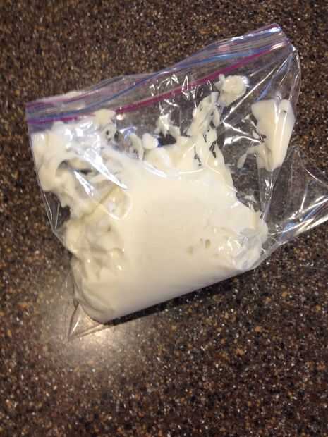 Mientras que está horneando, hacer tu glaseado favorito (o uso almacenar comprado) como dije anteriormente, hice un yogurt griego que es dulce pero la tarta y se trabaja muy bien con esta receta. Y lo puso en una bolsa ziploc o pastelera
