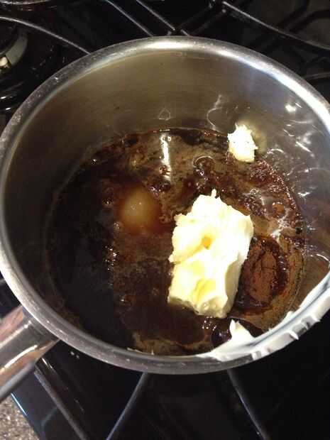 Poner el cacao en polvo, mantequilla, azúcar, miel y agua en un cazo y calentar ligeramente. (Lo puse en 3)