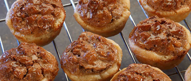 una combinación de frutos secos tostados (nueces o pecanas), chocolate, bourbon y una impresionante corteza mantecosa, "Derby Pie® " es tan delicioso se ha registrado. Similar a pasteles de nuez bebé, estas empanadas de Mini Derby de Kentucky es