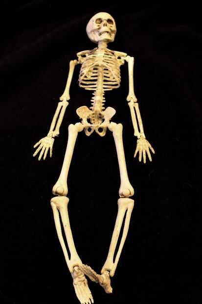 Comprar un esqueleto de plástico. Dependiendo del tamaño, puede que necesite cambiar las dimensiones más abajo para que coincida con las proporciones de su esqueleto. Este esqueleto fue comprado de Michaels y cuesta alrededor de $4,00. Usted debe ser capaz de encontrar otros en Amazon, Target, Walmart, etc..
