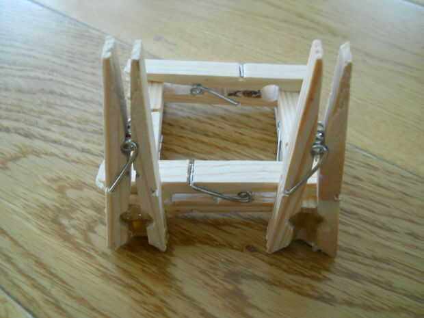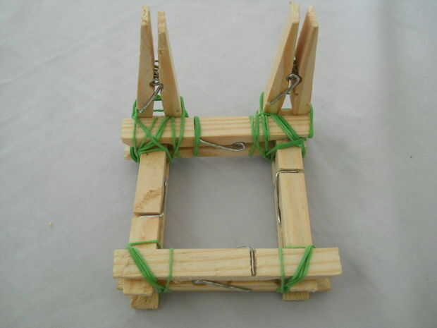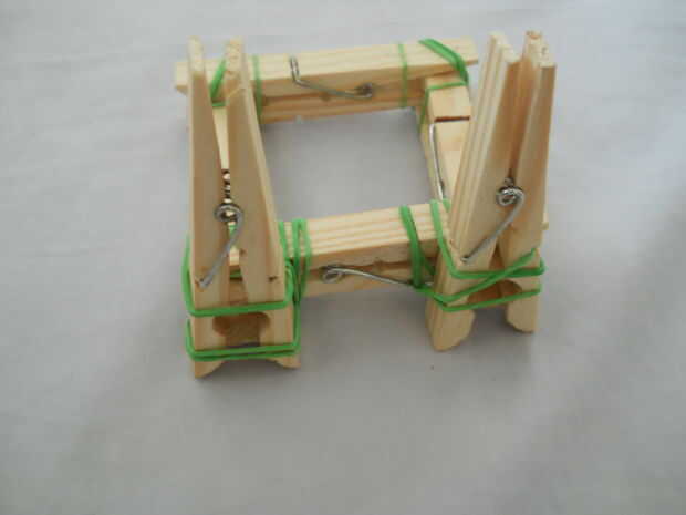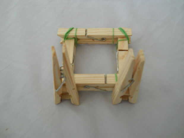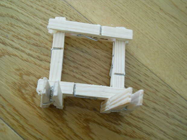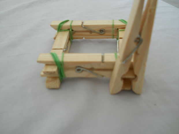 Todo lo que necesitas hacer es tomar 2 pinzas más y adjuntarlos en un ángulo de 90 grados a 2 esquinas de la base, es difícil de explicar así que tienen un vistazo a las fotos y sabrás qué hacer!