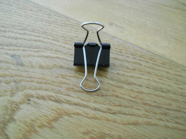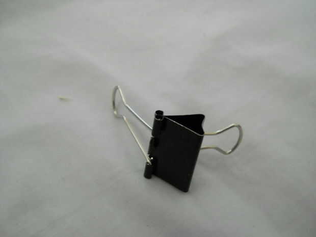 Muy bien por lo que necesita tomar 1 clip binder y colocarlo como se muestra en la primera foto, entonces usted necesita adjuntar uno del metal termina en el marco de la pinza como se muestra en la segunda foto, pero asegúrese de que usted no instale clop la parte negra de la carpeta a la estructura como entonces no funciona.