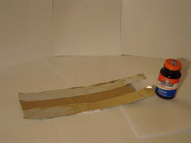 Cortar el cartón cerca de 6 pulgadas de ancho y 10 pulgadas de largo. Luego pegar 2 tiras de papel a las cartulina maneras largas, pero no tocar. dejas colgando alrededor de 2 pulgadas del extremo de su cartón.