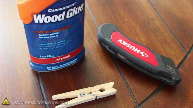 se necesita:Una pinza de ropa (madera)1 banda de cauchoHerramienta de corteHerramienta de la marca (opcional)Paso 1: Desarmar la pinza de ropa Simplemente deslice la parte superior de la pinza de la primavera. Y simplemente sacar el resorte. Ten cuid