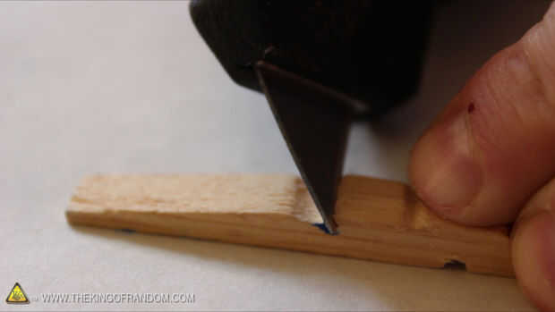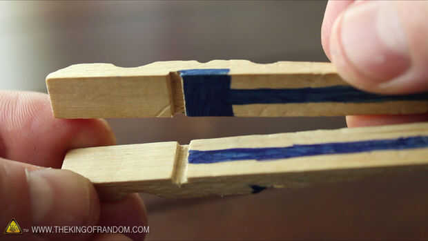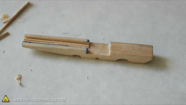 Los canales largos en el centro de las piezas va a actuar como nuestro cañón, así que jugar con ellos hasta que un fósforo de madera puede deslizar libremente hacia adentro y hacia afuera cuando las dos piezas se presionan juntos.