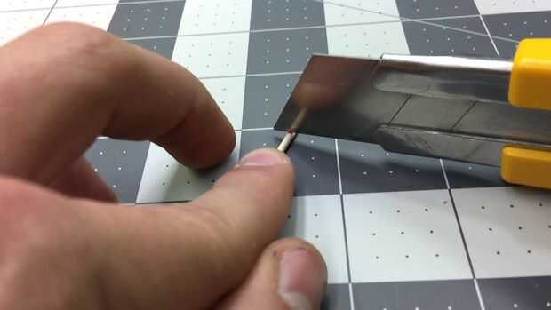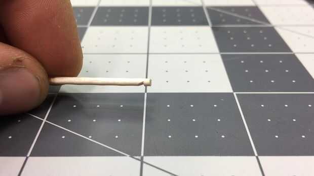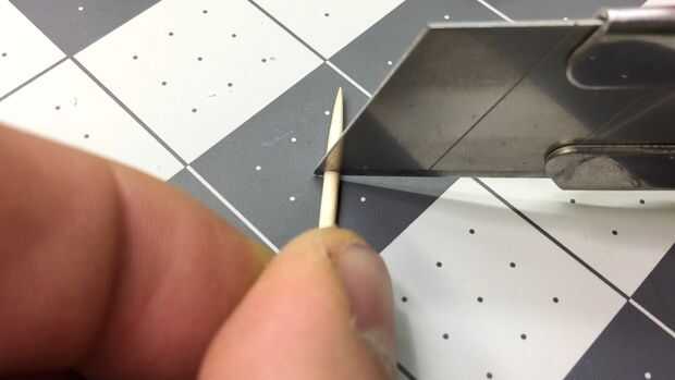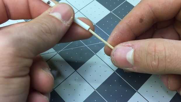 Vamos a seguir adelante y tomar un palillo de madera, cortar un extremo y empuje en el cilindro hasta que no van más allá y hacer una marca en el palillo de dientes. Aquí es donde tendrá que hacer una muesca que el gatillo se captura en carga.