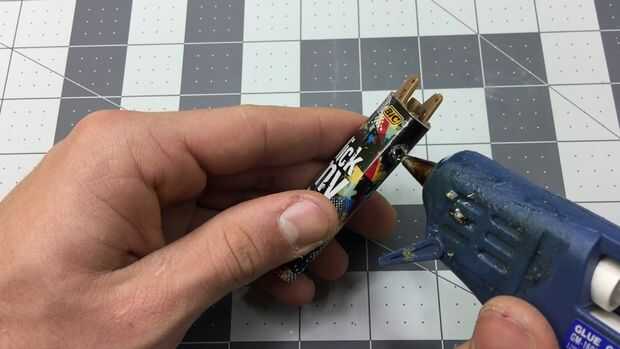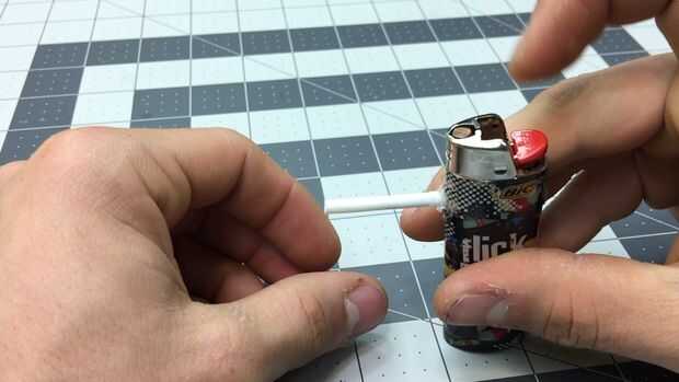 Todo lo que necesitamos hacer ahora es pegamento del cañón con el encendedor, asegurándose de alinear el gatillo hasta la muesca en el cañón.