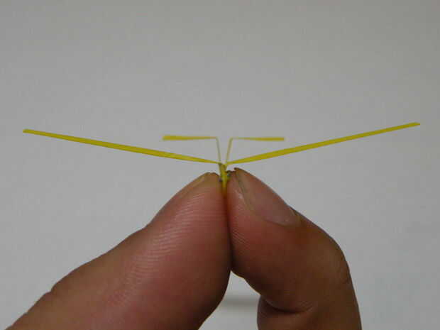 ala larga 5cm con una envergadura de 8cmPaso 1: Cosas necesarias1. papel2. pluma3. en el artículo4. tijeraEn primer lugar: dibujar el diagrama como se muestra en la imagen.Paso 2: Corte hacia fuera el diagrama y doblar exactamente por la mitad.Utiliz