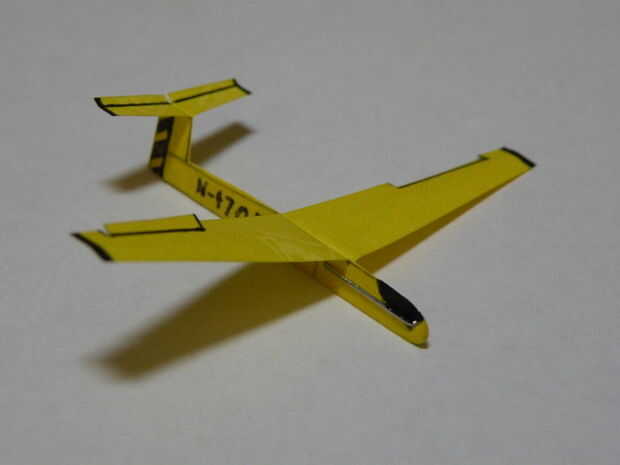 Para convertir el ala en un modelo a escala de un vuelo de la vida real, dibujar detalles en el ala, como un dosel, rayas del extremo del ala y números con marcador permanente o plumas de la cola. Para las superficies de control del trabajo, corte de ranuras en las alas y delinear con un lápiz. Esto pueden utilizarse para recortar la vela o realizar acrobacias aéreas. Al agregar datos, tenga cuidado de no añadir demasiado peso o alterar sustancialmente la forma de la vela. Un planeador detallado siempre luce mejor cuando vuela).