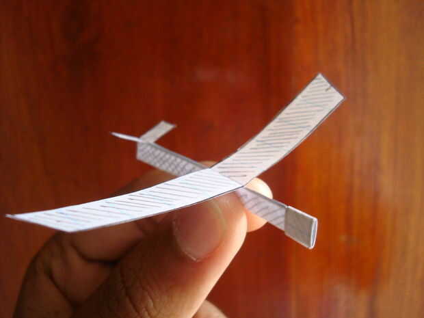 este instructable, inspirado por la proliferación de aviones de papel de tamaño micro, contiene instrucciones para la construcción de un planeador de miniatura de papel y una grapa. Tiene un fuselaje mide 40 milímetros, una envergadura de 60 milímetr