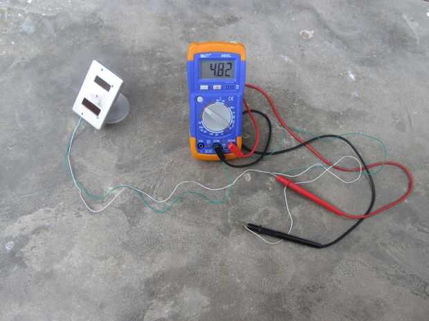 Como veis en la foto, su turbia, por lo que los paneles no están generando electricidad a su máxima capacidad. Cuando les intenté hacia fuera en luz del sol, le dieron unos 5.2-5.5V de la electricidad en lugar de 4.8V que ves ahora. Pero no importa si la tensión es alta o baja, ya tienes tu propio mini planta de energía solar! Y eso es un pequeño paso hacia una meta de poseer un parque de energía solar en un día.