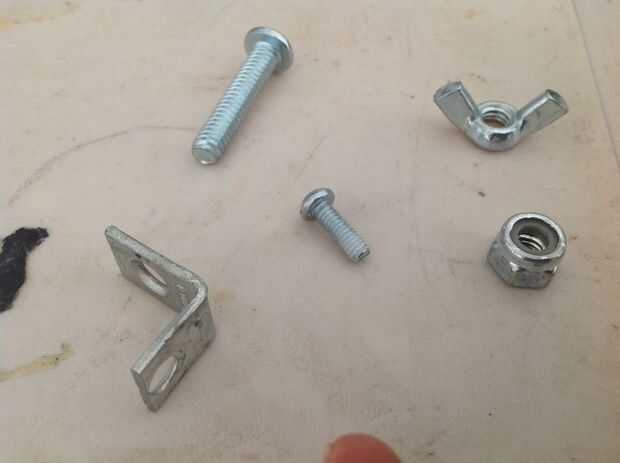 Ok lo permite comenzar. Como siempre, empezamos con las herramientas y los materiales involucrados. Pick up una cocina temporizador (compró minas en walmart por alrededor de $3) 1/4-20 perno al menos 1-1/2" largo tuerca de mariposa (puede sustituirse con una tuerca hexagonal regular) tuerca de tope (puede sustituirse con otra tuerca hexagonal regular) L-soporte pequeño (uno más pequeño se puede encontrar) perno minúsculo (apenas encontró en mi caja de herramientas). Herramientas: me pareció útil disponer de un taladro con brocas surtidas y una herramienta rotatoria con un accesorio de la rueda de corte de metales.