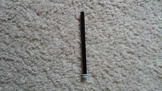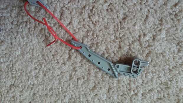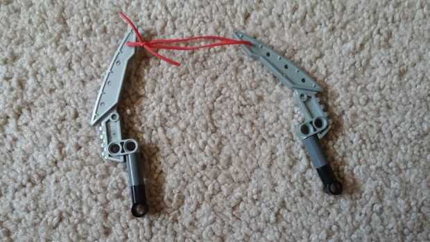 You will need two blades. Si tienes la pieza que se muestra, deberás cortar el final (o utilice una hoja diferente). ¡ No tire el pedazo que corte, se puede usar pronto... Conectar los dos a través del orificio se muestra (en ambos) y un nudo. Tenga en cuenta, el eje es aproximadamente once clavos largos, y la pieza final no será en todo el camino.