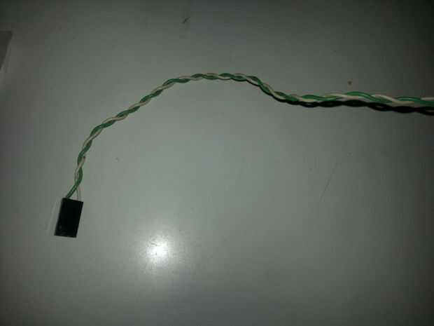 5.-una longitud de alambre de la soldadura (con cuidado) con el conector "T". He utilizado un par de cables que venía de una vieja PC. Tenga cuidado de no cortocircuito los pins vecinos.