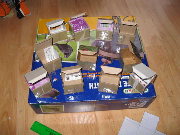 Después de que ha cortado las redes de la cartulina, fijarlos con cinta fuerte, tales como cinta de pato, dejando la tapa abierta por ahora